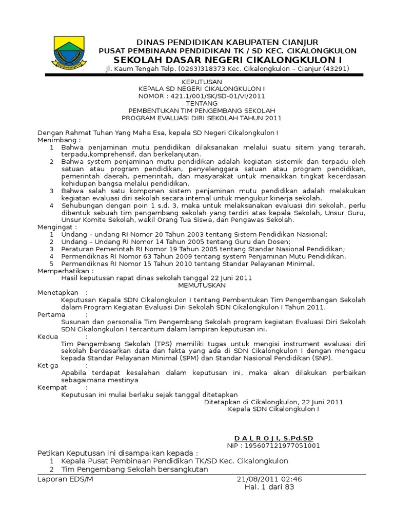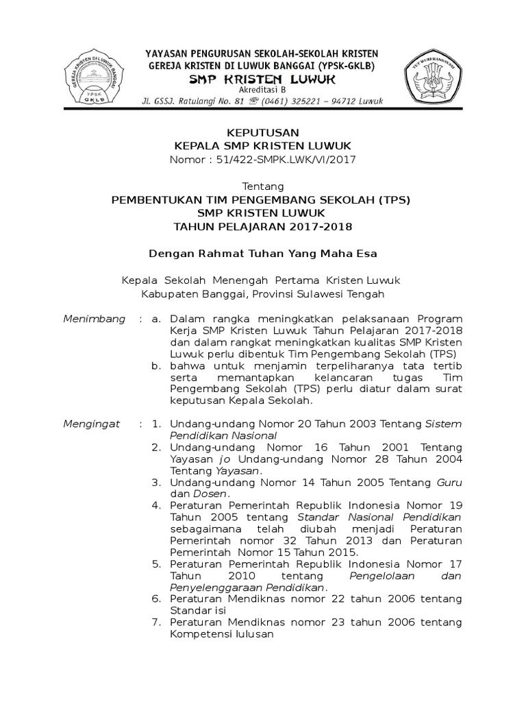 5 Contoh Sk Tim Pengembang Sekolah Terbaru Kherysuryawan Id